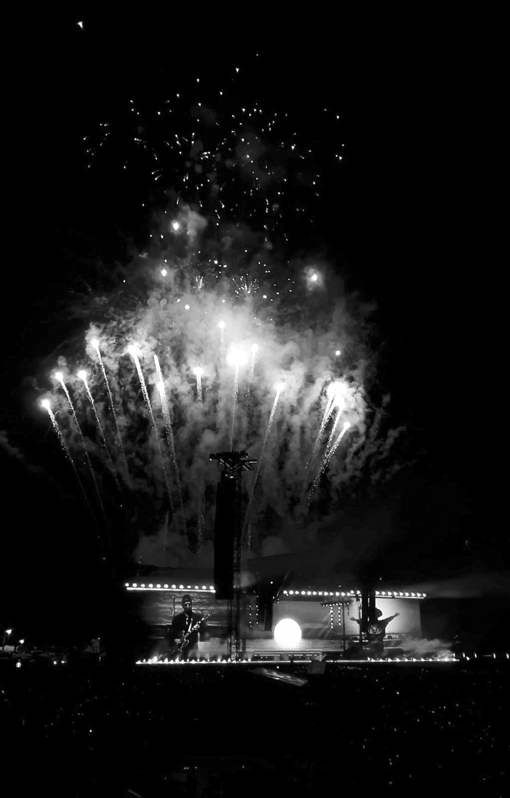 Liam dio la bienvenida al último gran tema de la velada: «Champagne Supernova», tras asegurar que ya era hora de dormir, pero que nos amaba. Cuando los primeros acordes invadieron el estadio, un silencio expectante se mezcló con el murmullo de miles de voces que pronto se unieron en un canto colectivo. Las guitarras etéreas flotaban entre las luces de celular que brillaban como un cielo estrellado sobre la multitud, mientras la voz de Liam nos guiaba en un viaje que parecía suspender el tiempo. Cada frase, cada acorde, resonaba como un eco de nostalgia, esperanza y grandeza, y por un instante el recinto entero se transformó en un universo propio, donde la música y la emoción eran una sola. Fue un final que no sólo cerraba un concierto, sino que grababa en cada corazón la certeza de haber sido parte de algo eterno, una experiencia que permanecerá para siempre en la memoria de todos los que estuvimos allí.